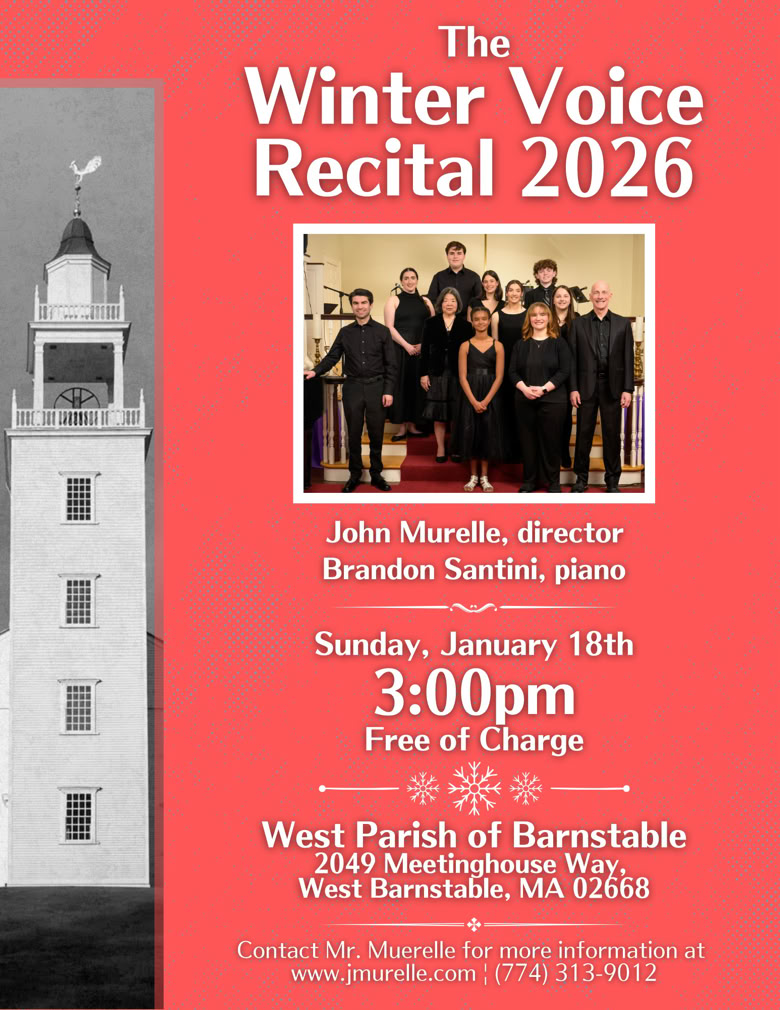 offers multiple voice recitals annually, affording students the opportunity to showcase their skills. We perform throughout Cape Cod with annual performances in Barnstable.